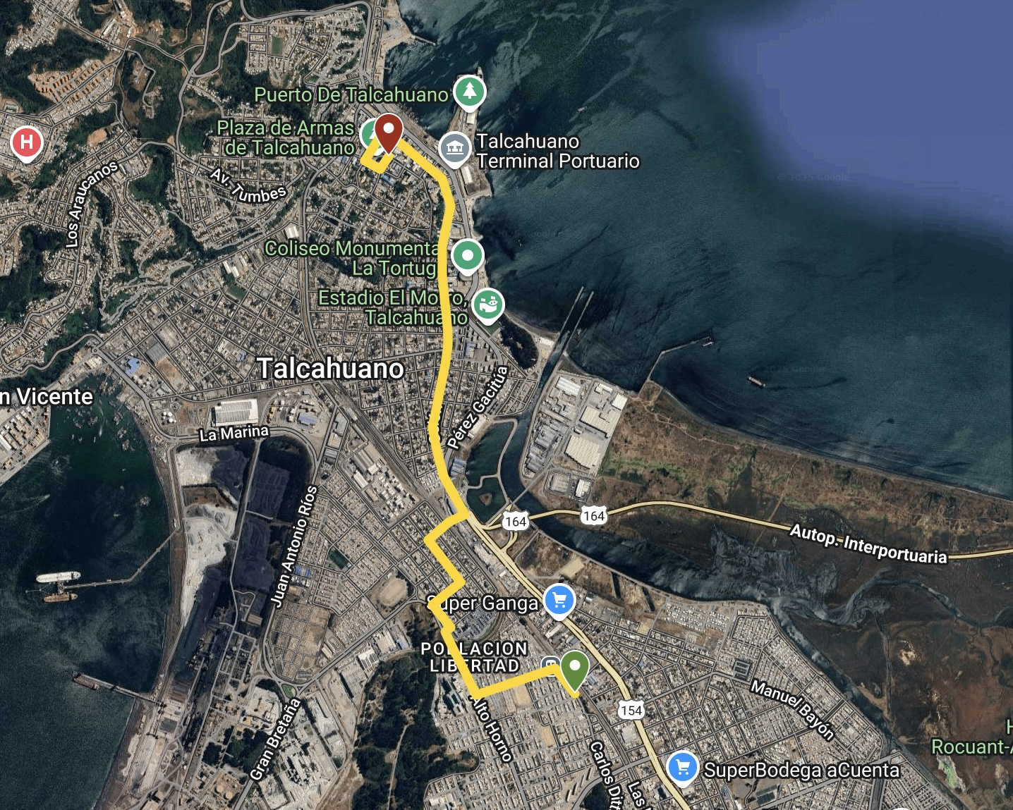 Carlos Dittborn - Daniel Peine - Alto Horno - Vinicio - Edelmira - Toribio Medina - Diego Portales - calle Hualpén - Colón - San Martín - Sargento Aldea - Bulnes - Blanco Encalada.